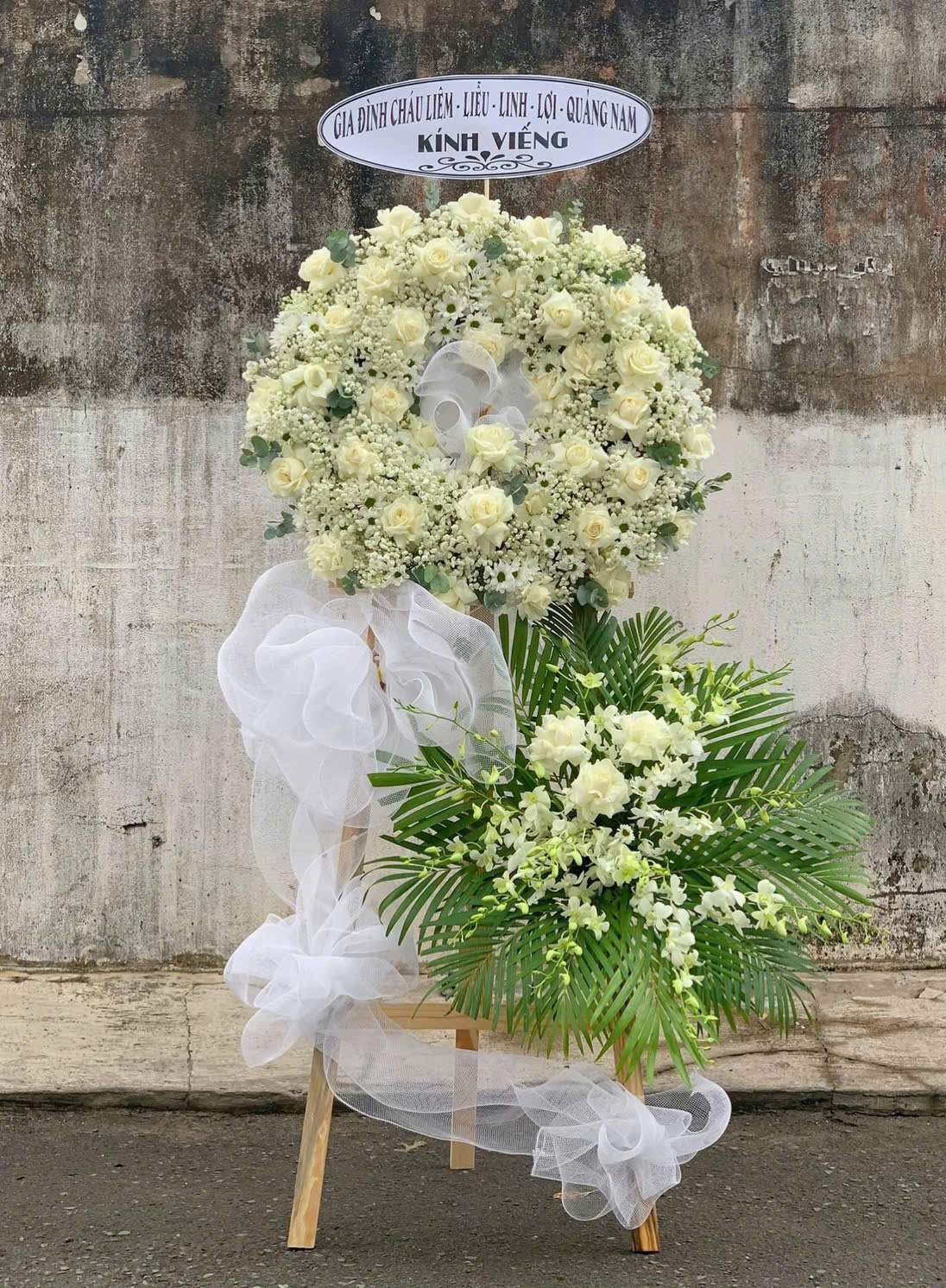 - Khi có tin buồn, một kệ hoa chia buồn được gửi đúng lúc không chỉ là lời tiếc thương mà còn là sự động viên tinh tế dành cho gia quyến. Mẫu kệ hoa tang tone trắng dưới đây được thiết kế theo phong cách nhẹ nhàng – thanh lịch – chuẩn nghi lễ, giúp bày tỏ lòng thành kính một cách trọn vẹn.