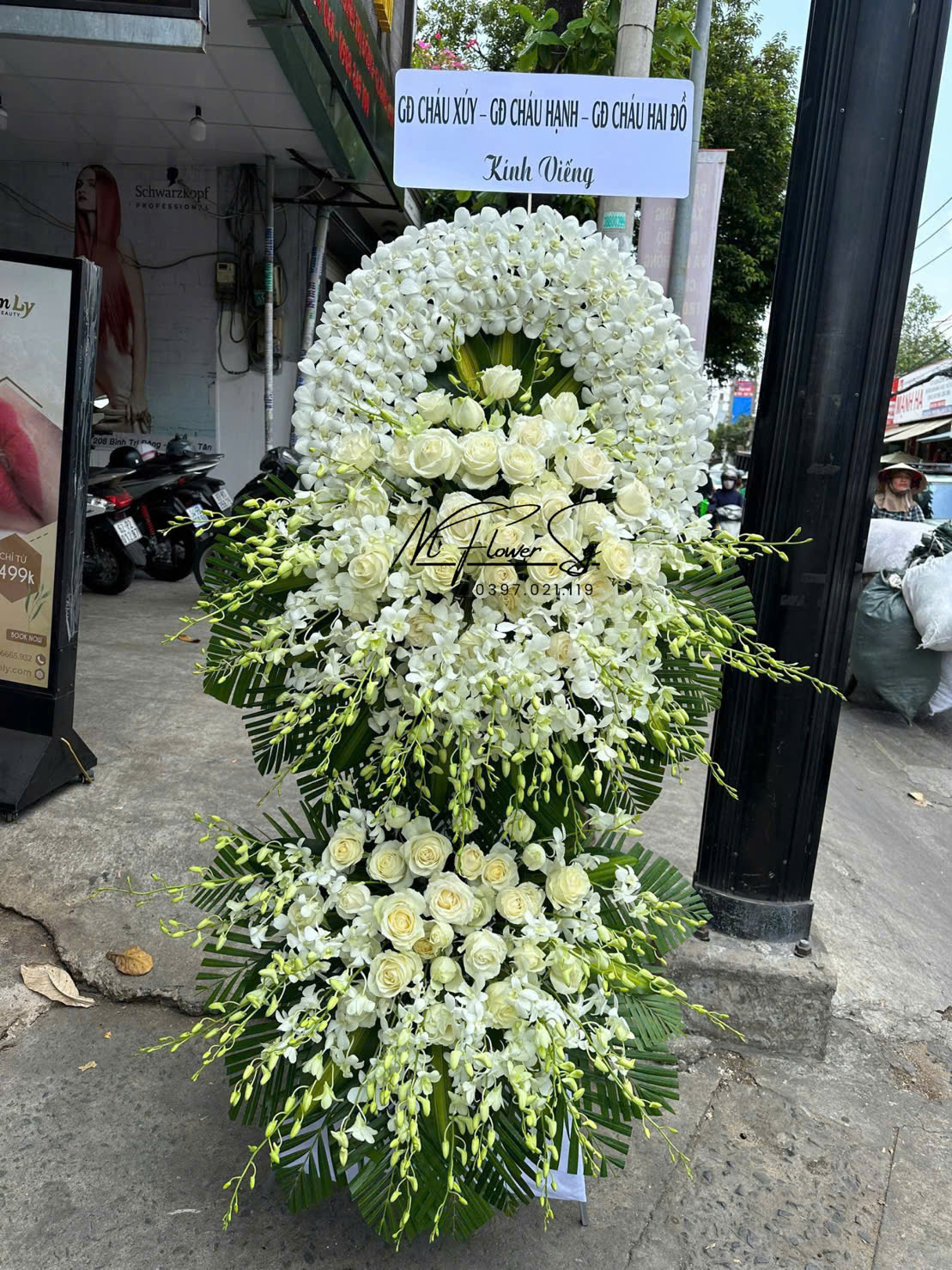 • Thiết kế cao, phối hoa hài hòa – phù hợp đặt tại nhà tang lễ, nơi tổ chức lễ viếng.