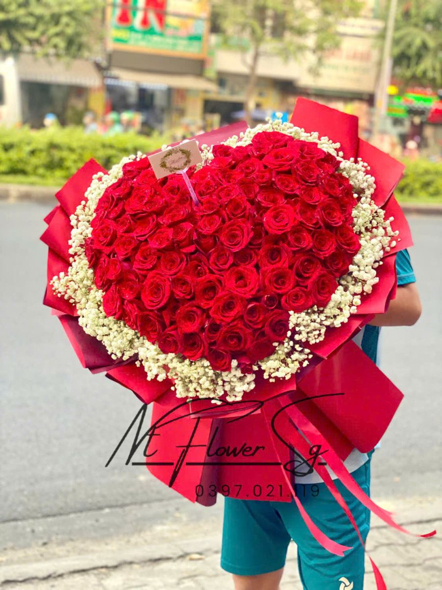 Hoa hình trái tim là món quà được lựa chọn phổ biến trong các dịp lãng mạn như: lễ tình nhân, kỷ niệm yêu nhau, cầu hôn, sinh nhật người yêu… Bó hoa không chỉ đẹp mà còn thể hiện thông điệp yêu thương không lời.